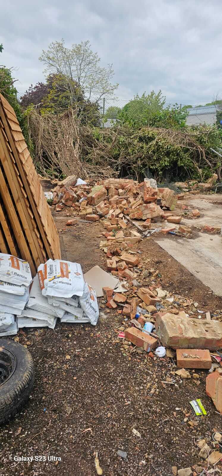 The project involved the removal of hardcore, broken brick, and general construction waste, along with additional clearance at the rear of the site where vegetation had built up.